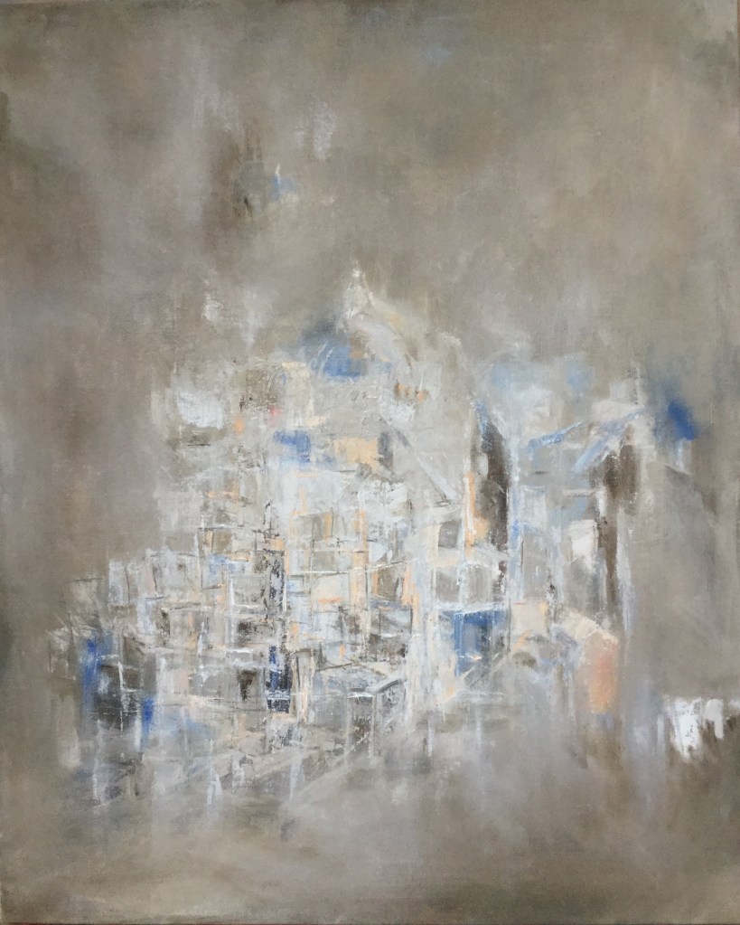 Peu à peu, je pénètre l’espace, l’apprivoise et me promène avec mes pinceaux, mes couleur, les textures de la peinture à l’huile vers une forme d’abstraction qui découle de mes études.
